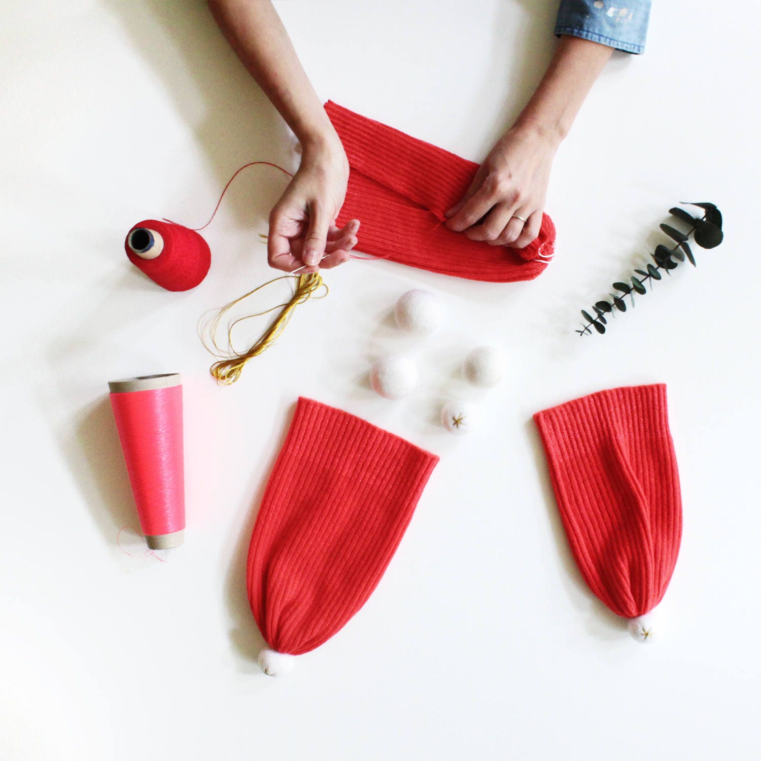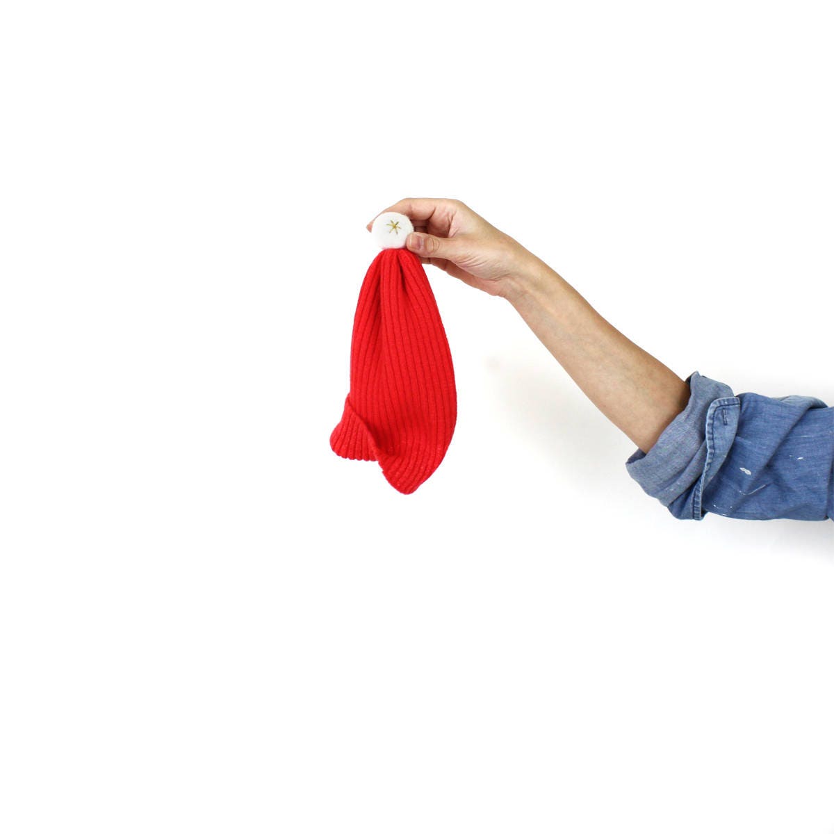 Christmas Santa Hat. This soft and cozy wooly hat is knitted in 100% Lambswool. The colorful and playful design is topped with a felted pom-pom in contrasting color.